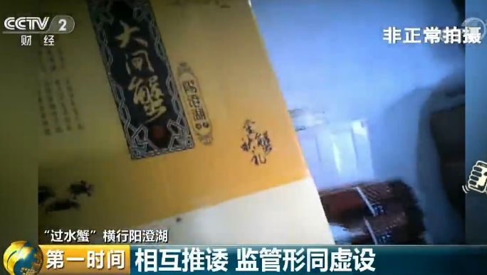 苏州市相城区阳澄湖镇消泾大闸蟹水产交易市场某批发商:"阳澄湖的蟹没有了,你买不到,你到市场上买的,全部是这些(外地)蟹拿去,装进箱子就是阳澄湖大闸蟹。"