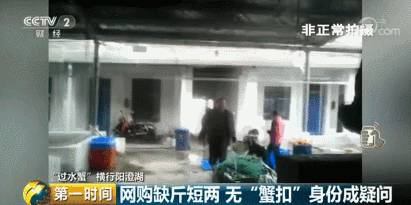 记者从高淳水产市场跟踪一辆装满“高淳螃蟹”的货车,最终开到了阳澄湖大闸蟹水产市场。工人把这些“高淳螃蟹”倒到玻璃缸里,第二天一早,当记者前来询问时,这些螃蟹就堂而皇之地变成“阳澄湖”大闸蟹了。