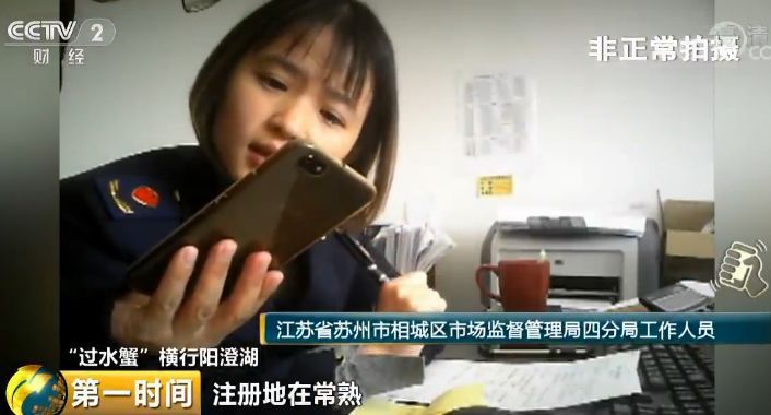 记者请他们查查蟹的来源,工作人员却表示,这个又是上家了,要找这家公司当地的市场监管局,他们没有权力。