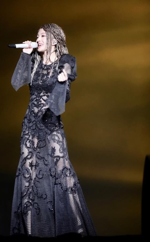 张韶涵身穿一件黑色渔网装长裙,修身的款式将她玲珑有致的身材完全的显现出来,勾勒出姣好的身形曲线,女人味十足!