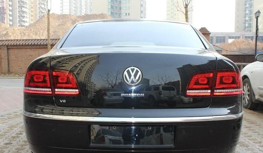 后尾就看着不太一样了,辉腾的英文标志在大众LOGO的正下面,而且尾部看起来很圆润。