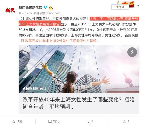 11 月 27 日公布的 " 改革开放 40 年上海女性发展调研报告 " 显示,女性初婚初育的年龄大幅提高。网友留言亮了 ..