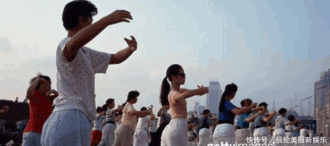 海外滩广场一处晨练点,大爷大妈们,那时主要练太极,还没恋上广场舞