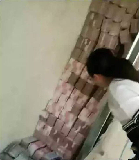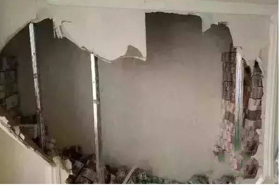 刚开始敲的空间比较小,所以空间比较暗,没有办法让人们看到里面的东西。以便看清楚,女子打开了整堵墙,突然有很多东西打在她身上,直到她看到那是什么的时候。她简直不敢相信自己的眼睛。因为击中她的东西是一堆人民币,整个墙几乎一半的空间都是装人民币的,前任住户是个土豪啊