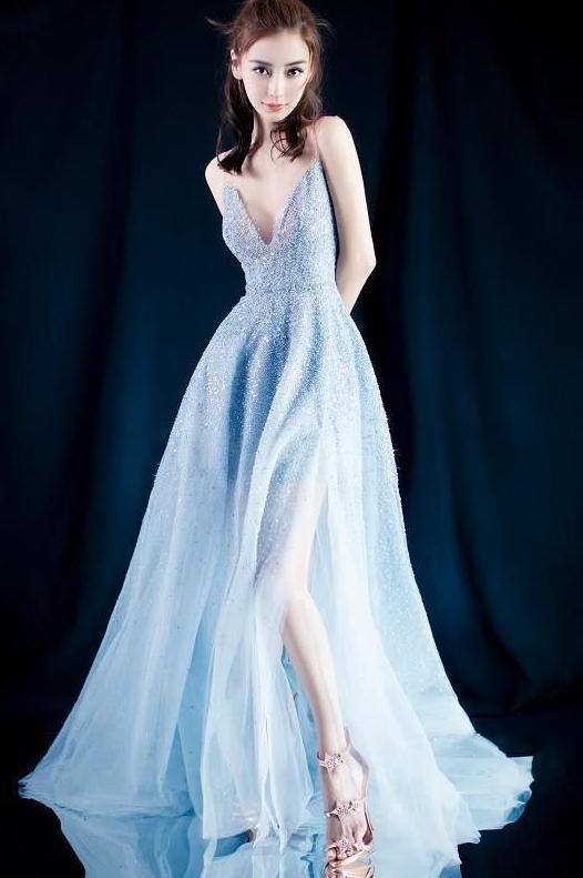 而说到杨颖我们就不得不说来欣赏她这极具魅力的穿搭了,看她这身穿着的这一袭连衣裙也是将她身上极具的性感女人味完美的得以散发了出来呢,裙子上身大胆的深V设计是让杨颖大秀其上半身的身体肌肤,不知道这种风格的杨颖有没有get到你们呢?