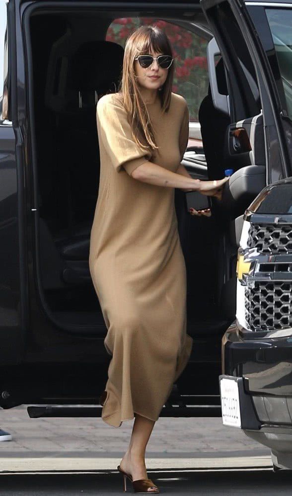 达科塔·约翰逊的气质和身材都超级好,这次的造型很随性,一般人穿根本没有这种效果,关键还是看身材。一条宽松连衣裙,居然能凹出翘臀,这性感的身材曲线,若隐若现的,很有魅力了,一些网友也表示:一般人都不敢尝试,很佩服她的好身材。