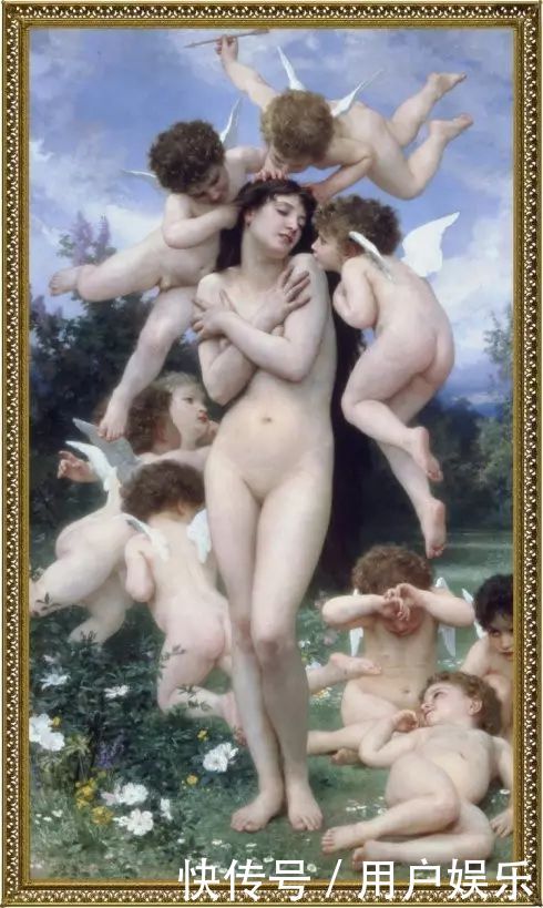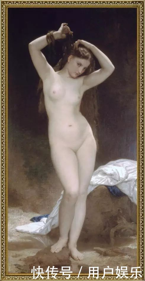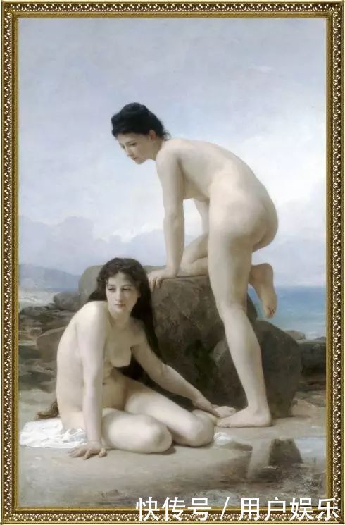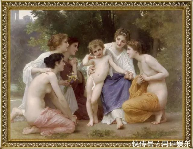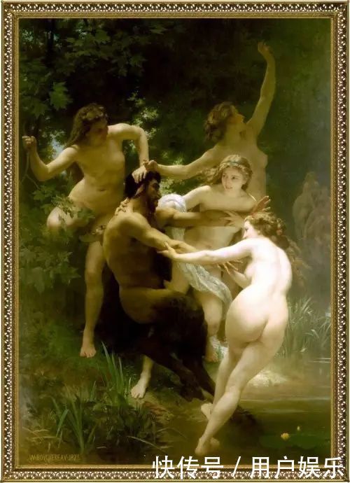 现藏美国麻省Clark Art Institute博物院。在希腊神话中,宁芙是小仙女的通称,萨堤尔是半人半兽的人物。这幅作品描述宁芙们(小仙女们)在洗澡时,一个萨堤尔在偷看,他被发现了,于是仙女们把他也拖下水去,一起玩耍的情景。