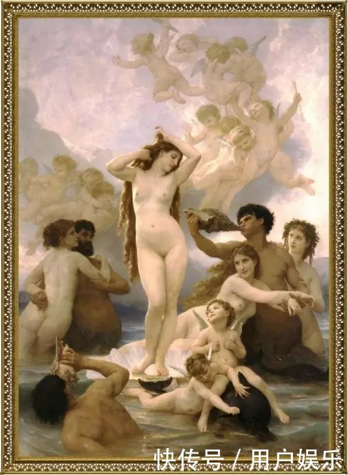 国外的评论说,这幅作品的元素,脱胎于作者当年复制的拉裴尔的《Galatea》和波提切利的同名作品《维纳斯的诞生》,后者也是站在贝壳上出生。