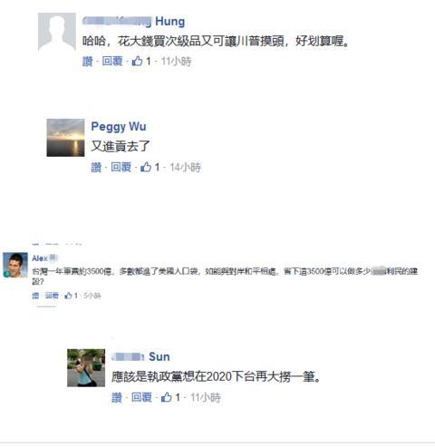 消息一出,随即在岛内引来一片骂声。有网友调侃"F16已经有些跟不上时代了","花大钱买次级品又可以让川普摸头,好划算喔"。还有网友痛批台当局花大钱向美国购置武器,却枉顾岛内的民生建设"又给美国进贡""台湾一年军费约3500亿,多数都进了美国人口袋,如能与对岸和平相处,省下这3500亿可以做多少利民的建设?"更有网友表示,"应该是民进党想在2020下台前再大捞一笔"。