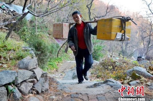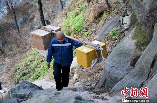 挑山工王荣泉正在运送货物。郝学娟 摄