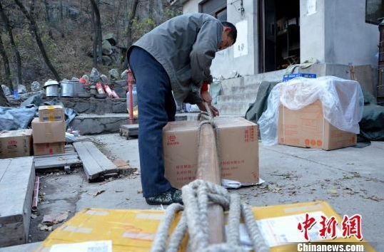 挑山工在打包货物。郝学娟 摄
