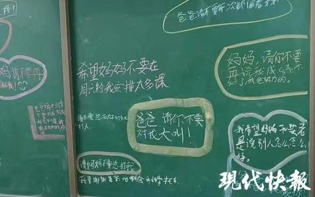 南京莫愁湖小学四年级 3 班班主任李莉告诉现代快报记者,让学生在黑板上捎话给家长,初衷是希望家长能更多地关心孩子。