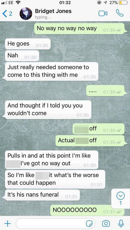 这名窘迫的女子和她的朋友分享了这个故事,她的朋友随后在社交媒体上分享了关于这次奇谭的聊天截屏。