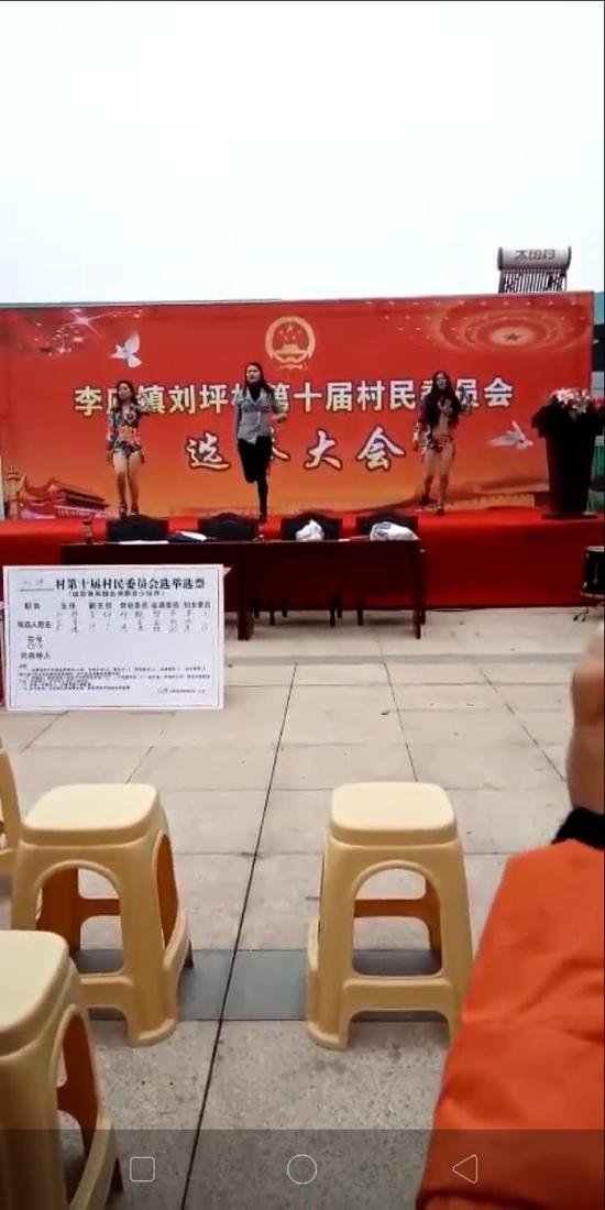 11 月 30 日,湖北南漳县李庙镇刘坪村召开村委选举大会。选举开始之前 ,主席台上几名衣着 " 暴露 " 的女子大跳辣舞。