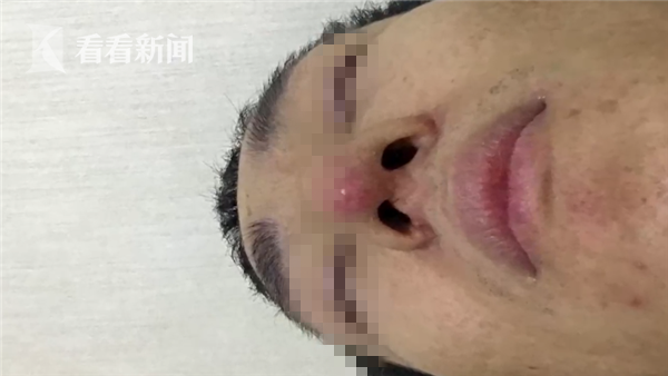 小蓝认为,这是今年3月,进行假体填充隆鼻手术带来的后果,于是,去了这家医疗美容诊所进行治疗,但没有效果。