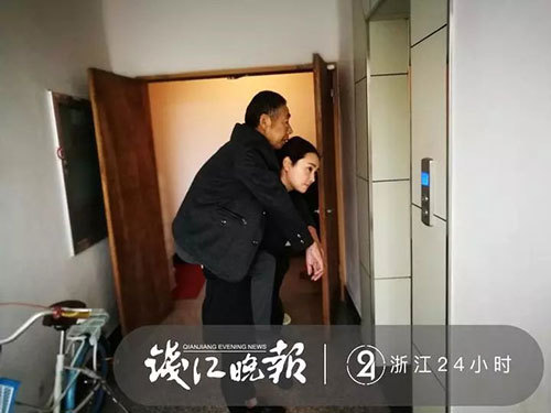 12月6日上午,衢州江山下着寒雨。在城区的一个小区,一个面目清秀的年轻女子背起一个瘦弱的老年男子走出家门走进电梯,然后开车去往医院。