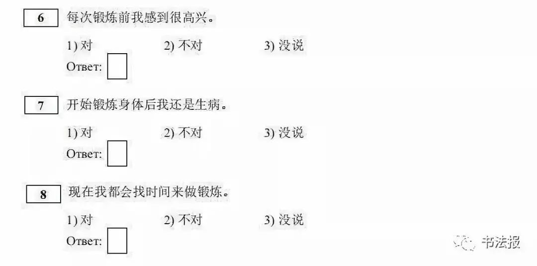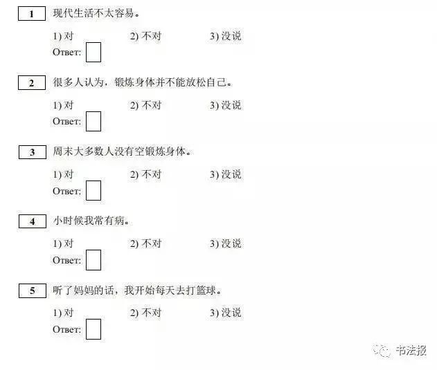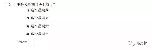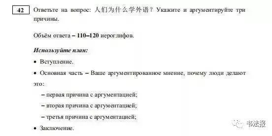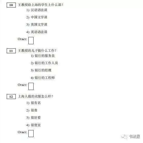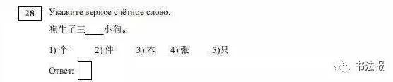 近日 俄罗斯联邦教育科学监督局副局长 安佐尔∙穆扎耶夫表示 2019年将首次在国家统一考试中 进行汉语科目的考试 俄罗斯国家统一考试是 中学生毕业考试 相当于中国的高考 目前1.7万多名俄中学生学习汉语 其中3000名高年级学生  其实,俄罗斯在2014年的时候就 开始制定汉语考试模型 今年,俄罗斯联邦教改研究所 首次公布 俄罗斯全国统一考试汉语考试的 题目演示版 笔试共42道题,分为四个部分: “听力”、“阅读”、 “语法、词汇和书写”、“写作” 考试时间总共为三个小时 先来看看选择题 描述动物的几个量词...  关于“的”“得”“地”的辨析 会虐哭俄罗斯学生吗?  关于汉语声调……  接着是听力部分 样题材料长这样  需要回答8道小题 基本上就是判断正误   这是第二段材料:  需要回答的问题包括:    等等,材料通篇都没有提到“王教授” 这让人怎么回答啊?! 最后一段材料也颇有难度 让学生听完材料进行排序   作为一个中国人 是不是觉得很简单啊? 但是对于俄罗斯“高考生”来说 可能就像我们听英语听力一样了 当然,还有写作题  怎么样,是不是仿佛看到了 英语四六级作文? 看完这些题目 小伙伴们非常庆幸 还好我们自带 中文技能!  赵之谦尺牍 历代名家尺牍精粹 高清大图 学书必备 总监丨崔鑫 编辑丨欧阳媛 蒙言 杨卡 设计丨金梦 来源丨人民网、诗词中国