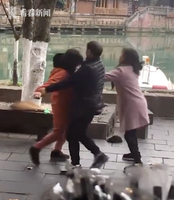12月3日,湖南张家界凤凰古城内,一名环卫工人看见有狗在道路乱排便,上前驱赶,因此与狗主人发生争执,狗主人叫来家人,一起殴打环卫工。
