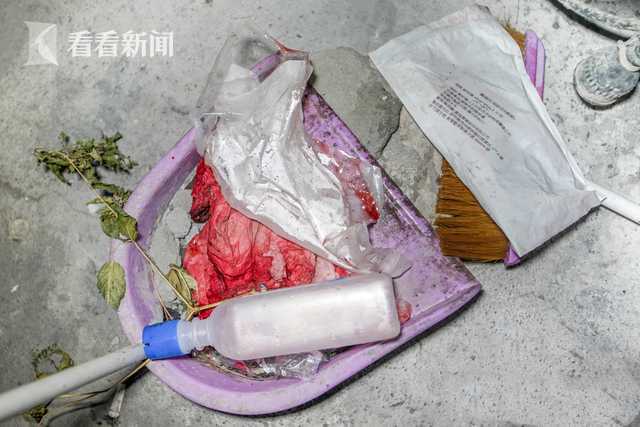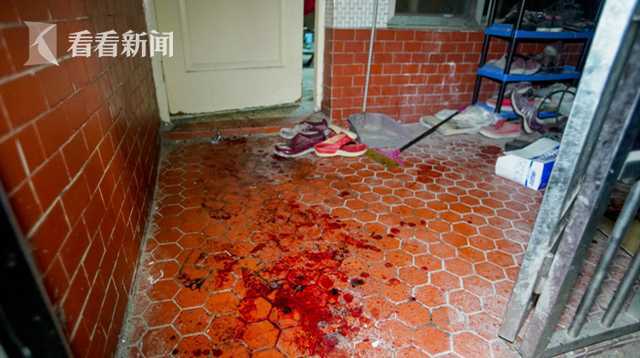 案发现场血迹一路从门口延伸到铁门,栅栏上还看得到残留的血迹,一旁的畚箕内可以发现沾满血迹的衣物和生理食盐水,场面令人胆战心惊。