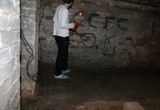 男子的惊叫把哥哥引来了,结果发现这里面居然有一个很大的地下室,而且墙上还涂鸦着一些什么东西,这让两人后背发凉。就在兄弟俩仔细打量这间地下室,或者说是“魔鬼的娱乐中心”时,忽然在一处角落里发现了一座诡异的石床。