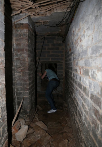 于是兄弟两人拿着手电筒一起下去了,当下去之后发现里面居然是一条阴深深的地下通道,走到一半的时候男子发现这上面还有天花板,但是已经非常破碎了。紧接着,在他们沿着狭小又弯曲的地下通道走了差不多3分钟后,终于在穿过最后的一卡口出,走在前面的男子突然惊声大叫一声,顿时把走在后面的哥哥吓了一跳。