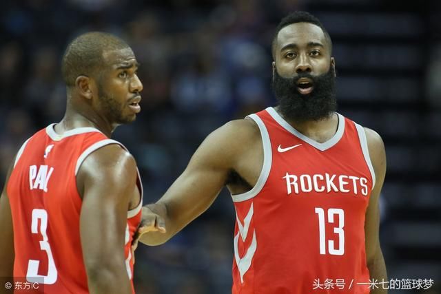 火箭队主教练德安东尼排出怪异阵容:哈登(后卫)、保罗(后卫)、格林(前锋)、恩尼斯(前锋)、塔克(中锋)。