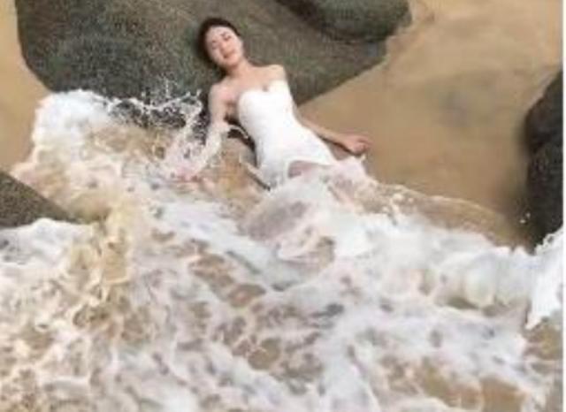 当天女子穿的很漂亮,很优美的摊在沙滩上,准备让男友抓拍几个海浪冲过来的瞬间,结果男友不怎么会拍照,一直没有找到合适的抓拍瞬间。