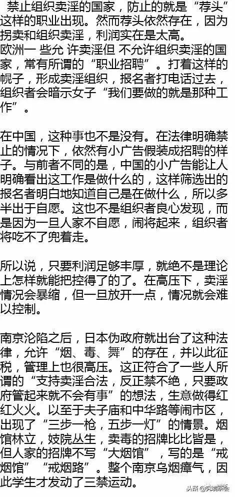 是,性交易来钱快,国家可以管起来,从而收税,作为一项大的收入。但这么高的收入,这么堕落的活法存在着,又有谁愿意去老老实实做其他买卖呢?