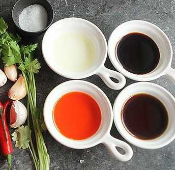 4、淋入生抽、香醋、辣椒油、花椒油搅拌均匀;