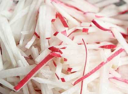 【小提示】:人们在吃萝卜时习惯把萝卜皮剥掉,殊不知萝卜中所含的钙有98%在萝卜皮内,所以,萝卜最好带皮吃。