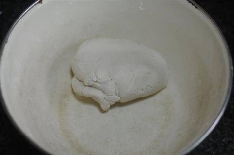 分次少量慢慢加入水,用筷子将糯米粉拌匀后用手揉成均匀的粉团。