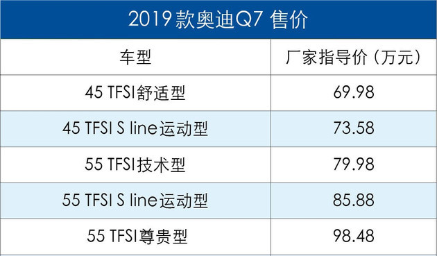 [分享]2019款奥迪Q7正式上市 售69.98-98.48万元/配置调整