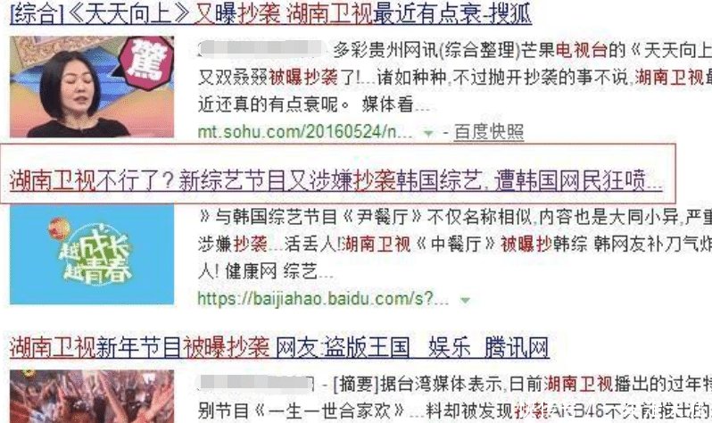 之前也爆料过湖南台抄袭的新闻,有一个叫《中餐厅》的真人秀节目,据说是抄袭了韩国的一个电视台的。后面网友将两个节目做了对比,确实是相似度非常高。确切的说湖南台确实抄袭别人的作品。国内网友纷纷评论,“湖南台太假”“希望有自我创新”“难道湖南台就没有人才了吗”