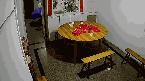 民警调取刘女士家中监控,看到了奇怪的一幕:晚上7点多,刘女士家中空无一人,桌上有许多拆过的红包,突然一把雨伞出现在监控画面当中,像长了腿似的移动起来,一直移动到里屋。