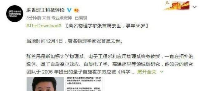 好不容易最近稍微有些缓和,但在12月初的时候,又有一位名叫林阿迪的台湾男演员因患癌症去世,而就在今日,12月6日,网上再次传出消息,著名的美籍华裔物理学家张首晟去世的消息,据说他生前患上了抑郁症,也因此了结了自己的生命,年仅55岁。
