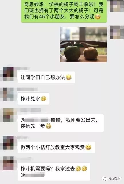 有的提出榨汁兑水,共同分享;有的说晒成陈皮,待20年后同学聚会时取出陈皮做几个菜,公平又有意义;有的说做蜂蜜橘子茶;还有的想出做两个小橘灯放在教室供大家观赏的好点子。