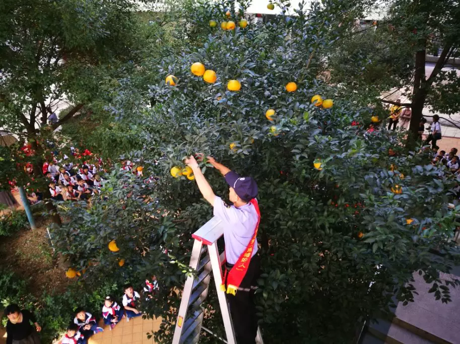 他们来自禅城区玫瑰小学,在12月6日,小学里的一棵橘子树上结出了60个柑橘,刚好学校有30个班,每班45人,正好分到2个橘子。