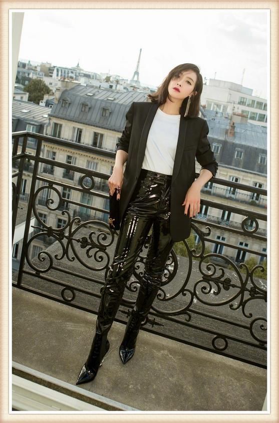 从照片中可以看出,宋茜的穿着也十分的具有特色,一身皮质的外套加上亮面设计的裤子让她整个人看起来都多了几分酷帅不羁的气息,轻易就让人可以把目光锁定在她的身上。