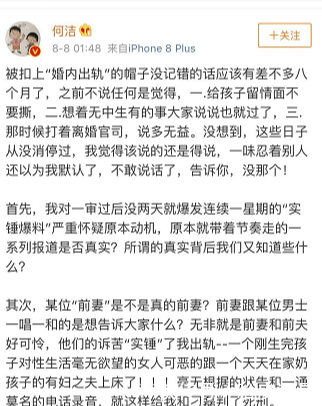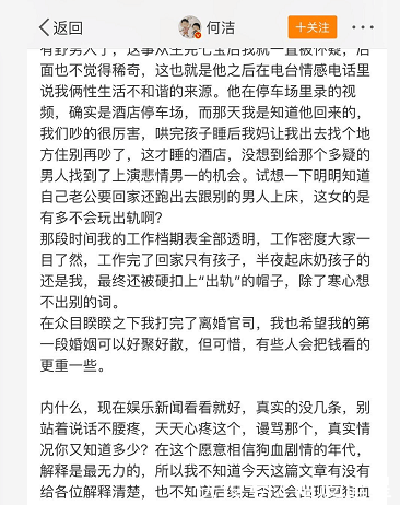 [分享]何洁深夜长发文曝离婚内幕, 透露性生活不和谐, 否认婚内出轨