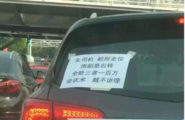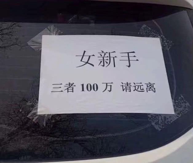 不过这几个字还不够引起人们的警惕,她在后面又加了一行小字“三者100万,请远离。”意思是说她的三者保险买了100万,看到这样的字条许多司机唯一做的事情就是变道行驶给她让路。对于这样的行为,很多司机感到很无奈,但是又理解,毕竟如今在路上,路怒症的人也不少,万一碰上新手被刮蹭了,还要调解半天,甚至动粗。