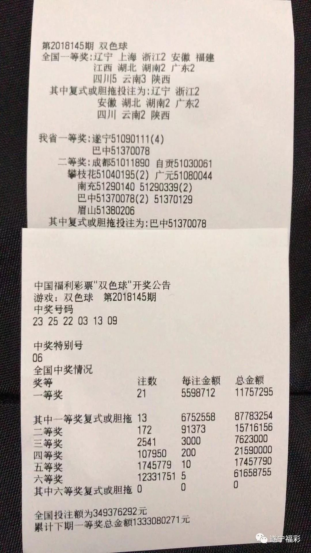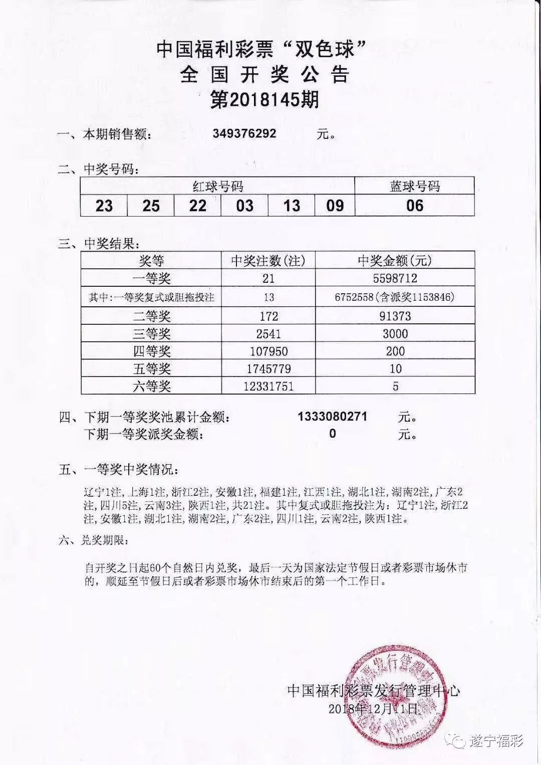 据遂宁福彩消息:昨日(12月11日)晚,中国福利彩票双色球游戏进行第2018145期开奖,这是2018年双色球10亿元大派奖活动启动后的第二十三期派奖。当期双色球红球号码为03、09、13、22、23、25,蓝球号码为06。