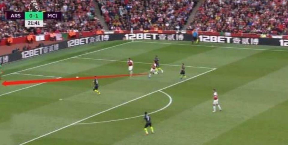 阿纳森后场传球大禁区前沿,传球给阿纳森新援贡多奇,这时曼城的贝尔纳多上前抢球,因为贡多奇在带球过程中无法转身,无奈只能将球被迫传给门将切赫,这时便发生了那个失误。