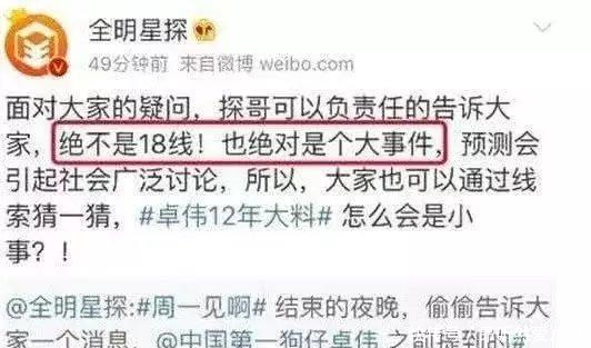 近期,卓伟又开始爆料大事件,据说,这件事情已经过去了12年,当初也表示守口如瓶,但是现近女主却被扒了出来。对于这位明星的名字没有做出做出表示,所以很多网友对于这件事情也是各种猜测,表示这对明星到底是谁?在娱乐圈中的明星夫妻不在少数,对于卓伟这样的爆料,简直无异于大海捞针,让很多网友感到非常的头疼,在一段时间的努力之后,表示坐等官宣。