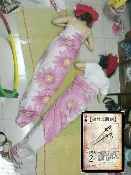不仅能cos动漫,cos神,还能cos武器牌。就地取材,太有魔性了。那两只肥胖的剑简直让我瞬间石化了。