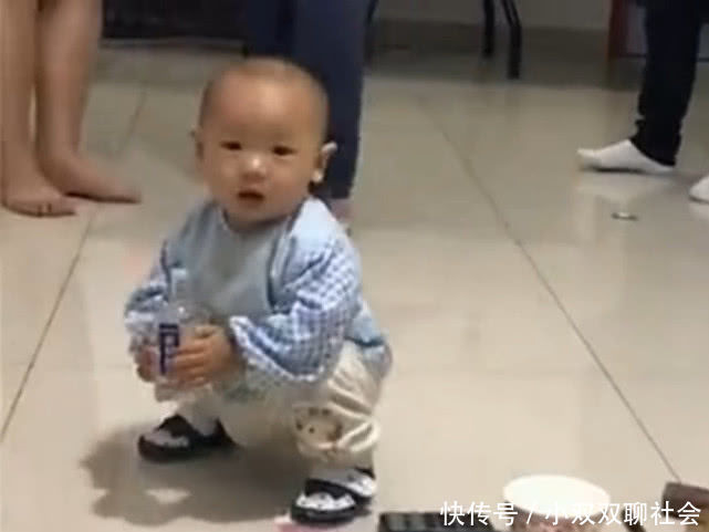 就在宝宝紧紧抓住酒瓶不撒手的时候,奶奶直接冲到宝宝的身边,一把就抢走了这瓶酒,一副不怎么高兴的模样。宝宝看到自己手中的酒瓶被奶奶拿走后,整个人都有点懵懵的感觉,直接站起来转身看着奶奶离开的背影,这样的画面还真是让人有些哭笑不得呢。