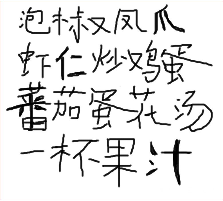 王老板回应着,把菜单拿到厨房,拿给厨师让他赶快做。张厨师看了一下菜单,嚷嚷了一句,这点菜的客人菜名写的好奇怪啊,小孩子写的吧,说完就准备开火炒菜了。王老板听他这么说,就把菜单拿过来看了看,字写的真糟糕,真是连小学生写的字都不如,只见菜单中写着:泡椒凤爪,虾仁炒鸡蛋,蕃茄蛋花汤,一杯果汁。王老板还注意到,菜单中有几个字都加粗了,比较显目,若把那几个字连起来读,就是爪仁蕃汗,抓人贩子?王老板想了想,突然明白了过来,就是抓人贩子的意思,那小女孩一定是被那人贩子控制了,用菜单向他求助呢。王老板明白后,果断偷偷的用手机立刻报了警。