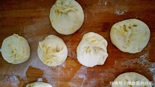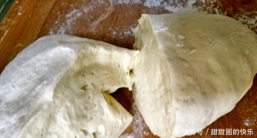 5.把面团切成小块。头尾捏紧压扁,擀成面饼。