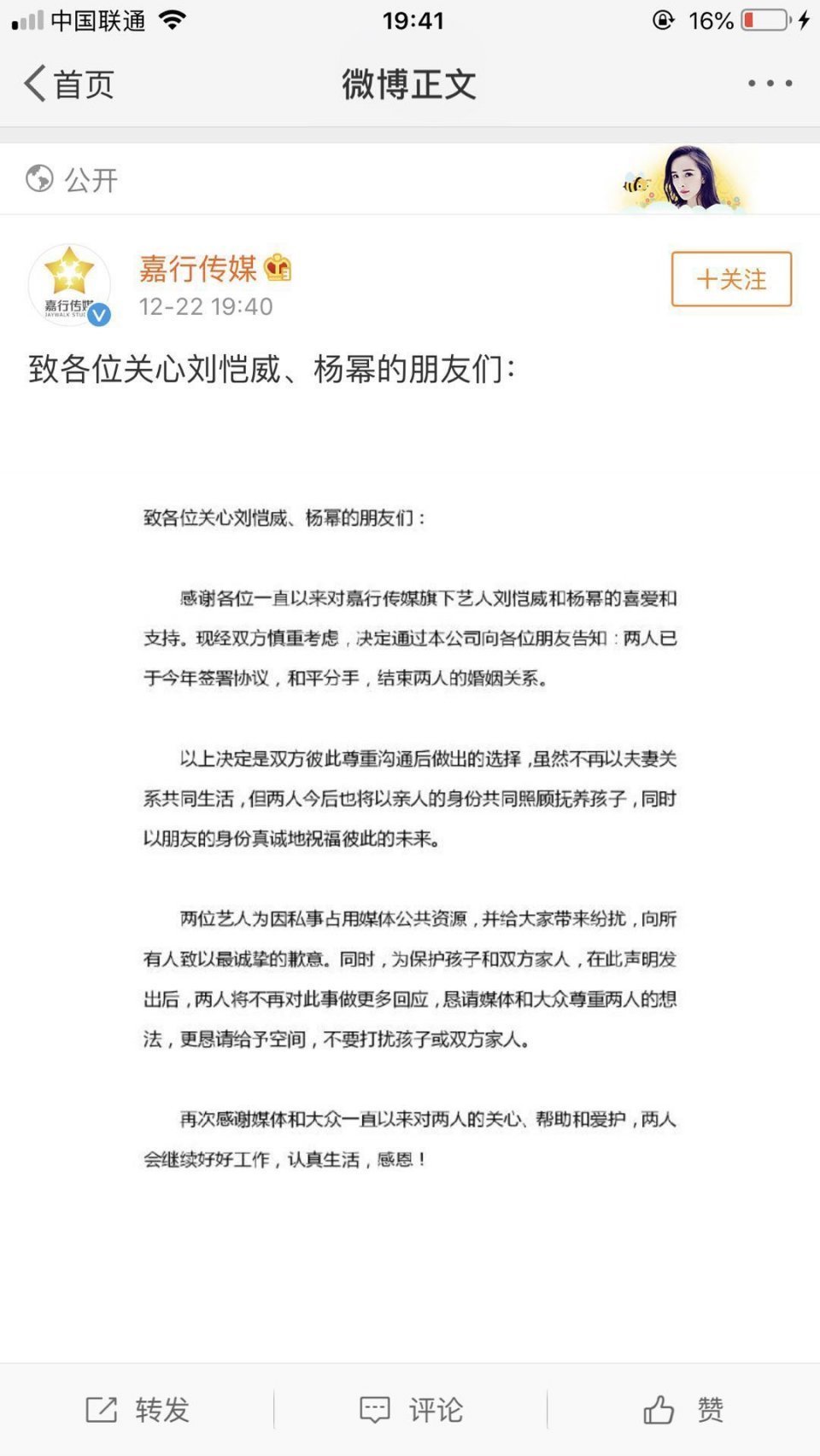 [分享]重磅!杨幂刘恺威宣布离婚