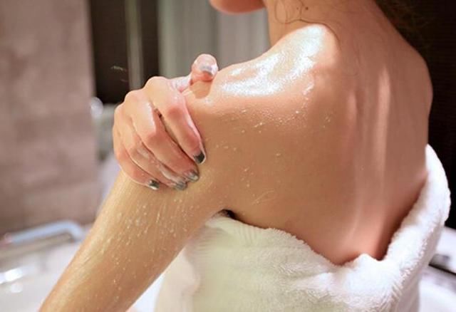 4、后背常常能抓下白泥,其实是螨虫啃吃皮肤细胞,加快细胞死亡变成老废角质,后背才总是有白泥死皮。