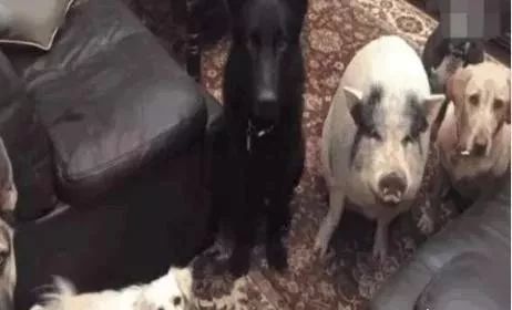 刚开始,公狗们都不愿意和这只小猪玩,但是过不了多久,这只母猪和这几只公狗,也都相处的很好。这久而久之,母猪更是将自己当成了一只狗,每天学着狗摇尾巴,伸舌头,就连看到主人,都会叫唤两句,这影响不是一般的大。